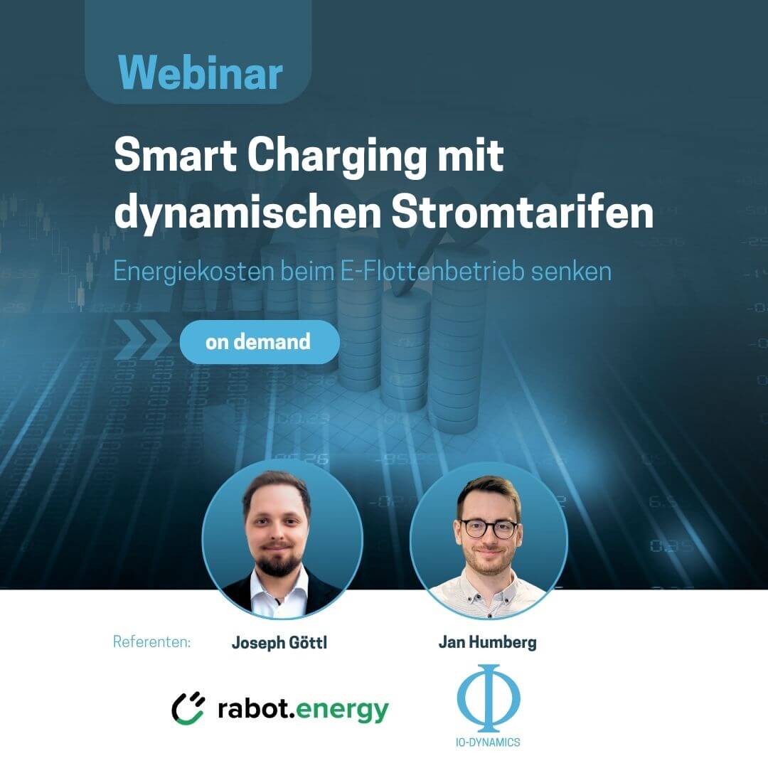 Lade deine Elektrofahrzeuge bis zu 30 % günstiger – indem du Strom dann nutzt, wenn er am billigsten ist! Wie das genau funktioniert, erfährst du im Webinar. Gemeinsam zeigen dir Jan Humberg (IO-Dynamics) und Joseph Göttl (Rabot Energy), wie du durch cleveres Laden und den richtigen Stromtarif spürbar Kosten im E-Flottenbetrieb sparen kannst – ohne zusätzlichen Aufwand im Alltag.